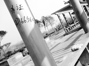 ??? 左鞋右穿:看到濱河公園泛濫的辦證小廣告,很是氣憤,難道沒有辦法管理一下嗎?