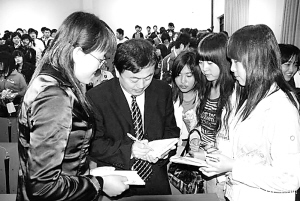 5月14日下午,周口市“青年創(chuàng)業(yè)行動(dòng)”青年典型事跡巡回報(bào)告會(huì)在周口某高校舉行。報(bào)告會(huì)后,青年創(chuàng)業(yè)典型正在為學(xué)生簽名。 ?。ū?攝)