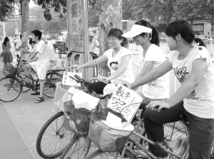 ▲ 一到暑假,就有許多大學(xué)生在周口街頭求職,希望找到一份暑期的家教工作?! 。ㄓ浾?孫艷 攝)