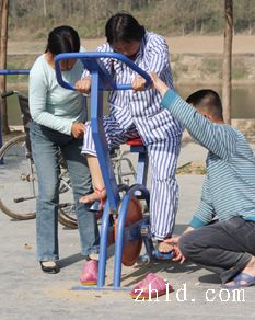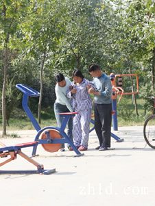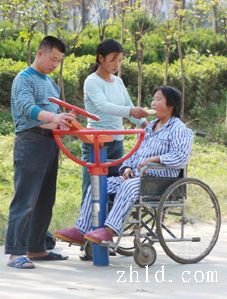10月22日,我在川匯區(qū)濱河公園無(wú)意中拍攝到了一組鏡頭。一對(duì)兒女用輪椅推著半身癱瘓的老人,不厭其煩地幫老人使用健身器材,他們不停地蹲下、站起,又蹲下,配合著老人僵硬的動(dòng)作。