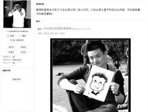 網(wǎng)友開博客紀念李曉明,圖為博客首頁截圖?!。▽O艷 制作) |