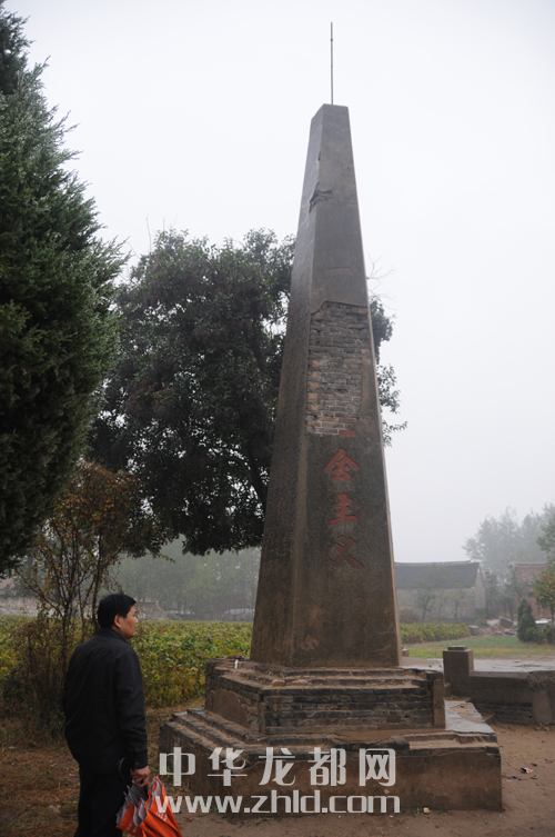 ????在秋雨中,我們走進(jìn)陵頭崗村北頭的普理小學(xué),這是所普及革命真理的紅色校園。在青松和古柏的映襯下,校園操場(chǎng)中央矗立的三崗革命根據(jù)地紀(jì)念塔顯得更加莊嚴(yán)肅穆,塔身正面刻寫(xiě)著“為了革命事業(yè)的勝利,英勇?tīng)奚挠⑿蹅兦Ч挪恍唷?1個(gè)大字,塔身背面的字跡雖然已經(jīng)模糊,但仔細(xì)辨認(rèn)還能看到這樣一段話:“河南省老根據(jù)地建設(shè)委員會(huì)為了培養(yǎng)老區(qū)人民的后一代,使其繼承革命事業(yè)的優(yōu)良傳統(tǒng),成為社會(huì)主義的建設(shè)者和保衛(wèi)者,乃于一九五六年撥發(fā)款項(xiàng)修葺擴(kuò)建三崗小學(xué),欣值落成用特志其端末,以資留念,時(shí)在一九五七年十月。”遺憾的是,由于年久失修,塔身西北側(cè)上半部已經(jīng)風(fēng)化,刻寫(xiě)的“一切為了社會(huì)主義”8個(gè)大字只剩下“一”“會(huì)主義”4個(gè)字,覆蓋在塔身中部外層的水泥已經(jīng)脫落,露著磚塊。據(jù)69歲的村民侯民生介紹,1957年10月,普理小學(xué)從陵頭崗村舊址搬遷到此后進(jìn)行了擴(kuò)建,不僅蓋起了當(dāng)時(shí)全縣一流的校舍,還在校園正中心建起了這座紀(jì)念塔。