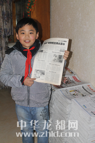????聽記者夸自己小時候可愛,李逸揚拿著刊有自己嬰兒時期照片的報紙讓記者拍照??粗暮玫恼掌?,他對記者說:“那個時候我太小了……我和晚報一樣大,現(xiàn)在我十歲了……”