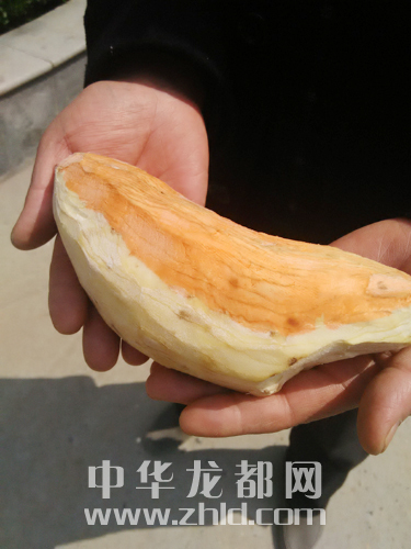 ? 近日,淮陽縣居民林樹松買到了一塊“混血”紅薯,紅薯一半是牙白色,一半是橘紅色。整塊紅薯長(zhǎng)約23厘米,最粗處直徑約22厘米。因?yàn)閾?dān)心紅薯基因變異,林先生沒敢食用這塊紅薯。為此,記者采訪了周口師范學(xué)院生命科學(xué)與農(nóng)學(xué)學(xué)院院長(zhǎng)陳龍。陳教授說,紅薯是塊莖類作物,不像小麥、大豆那樣,它不是種子,所以基本上不存在基因變異的情況。一塊紅薯出現(xiàn)兩種顏色,應(yīng)當(dāng)是正?,F(xiàn)象,市民可以食用?! ⊥韴?bào)記者 朱海龍 攝
