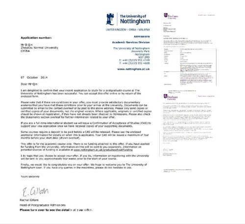 秦博杰收到的錄取通知書