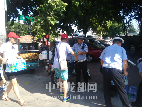 ????又是一年最熱時,在馬路上工作的交警和環(huán)衛(wèi)工可謂備受煎熬。有感于交警和環(huán)衛(wèi)工的辛苦,7月29日,愛心學(xué)校和公益機(jī)構(gòu)以送瓶裝礦泉水的方式,向他們表達(dá)了自己的敬意。晚報(bào)記者 郭坤 張燕 攝
