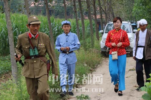 ????就是這樣一群面朝黃土背朝天的農(nóng)民,依據(jù)豫劇折子戲,自編自導(dǎo)自演,拍攝了一部時(shí)長(zhǎng)30分鐘的微電影——《掩護(hù)》。錢(qián)店鎮(zhèn)文化站站長(zhǎng)王娟介紹道,錢(qián)銀行愛(ài)好文藝,去年春節(jié)的時(shí)候,他就在家里自編自演了一臺(tái) “家庭春晚”。當(dāng)時(shí),村民把他家圍得水泄不通。今年是抗戰(zhàn)勝利70周年,錢(qián)銀行又突發(fā)奇想,自己創(chuàng)作劇本,以抗戰(zhàn)期間農(nóng)民掩護(hù)八路軍、八路軍保護(hù)農(nóng)民的故事為主線(xiàn),自籌資金1萬(wàn)多元拍攝微電影。經(jīng)過(guò)幾個(gè)月的籌備,現(xiàn)在終于正式開(kāi)拍了。