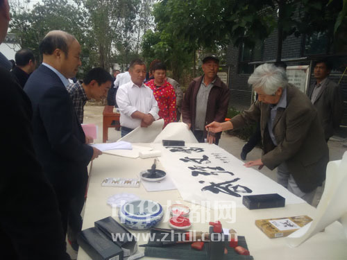 ????本報(bào)訊 10月9日,沈丘縣馮營鄉(xiāng)李寨村的父老鄉(xiāng)親為文化著了一回魔。當(dāng)日,由河南省文化廳主辦,省文化館、省陽光工程文化志愿者項(xiàng)目辦等單位承辦的“河南公益無限系列活動(dòng)——千名書畫志愿者進(jìn)萬村”在李寨啟動(dòng),現(xiàn)場揮毫潑墨的省市書畫名家被爭相求字求畫的村民圍得水泄不通。