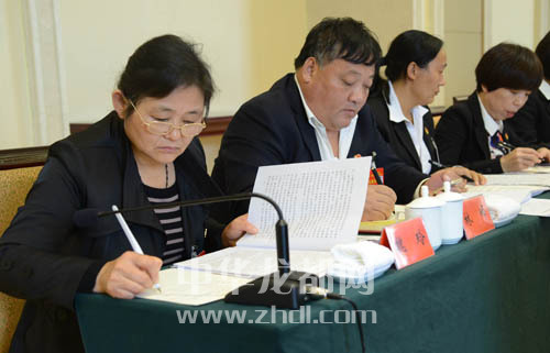 ????出席省十次黨代會的我市代表認(rèn)真討論省委工作報告。記者 王映 攝