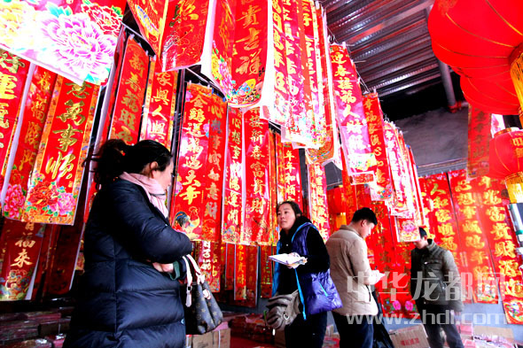 ????????近日在周口華耀城春聯(lián)批發(fā)市場小商販忙著進貨,市民精心選購。