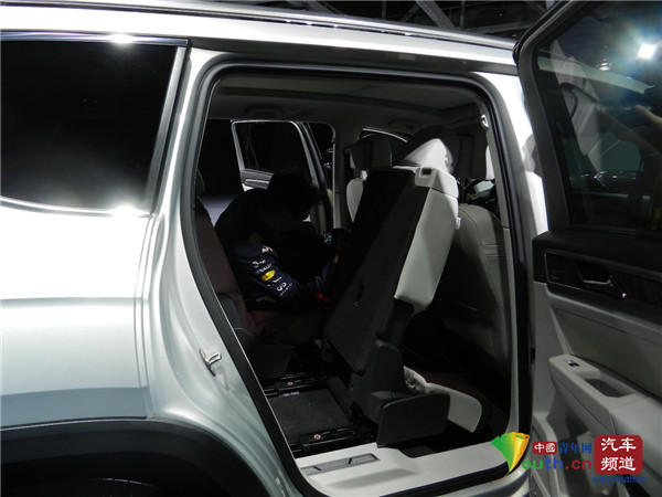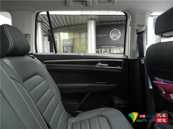 既然是7座SUV,那么就不得不說一下它的二三排的乘坐空間,我們先讓一米八左右的體驗者坐入第三排,調(diào)節(jié)第二排座椅的位置,讓體驗者膝部的空間一拳,頭部的空間四指,這樣坐姿完全不會難受;我們再讓體驗者坐到第二排,此時發(fā)現(xiàn),腿部空間依然有一拳三指,頭部空間四指,真·七座不是吹出來的!