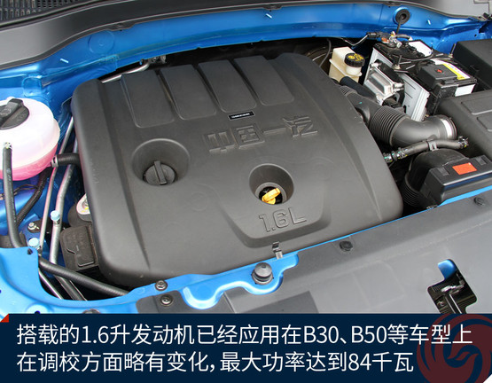 奔騰X40搭載的是型號為CA4GB16的1.6升自然吸氣式發(fā)動機(jī),這臺發(fā)動機(jī)在B30、B50等車型上已使用很久,只是性能調(diào)校上稍有不同。最大功率為84千瓦,峰值扭矩155牛米。
