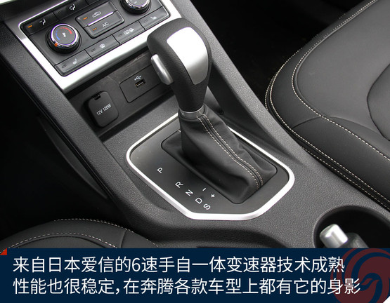 傳動系統(tǒng)匹配的是日本愛信第三代6速手自一體變速器在奔騰各款車型中都有所應(yīng)用,響應(yīng)速度、換擋機(jī)制等方面的表現(xiàn)都比較成熟、均衡。