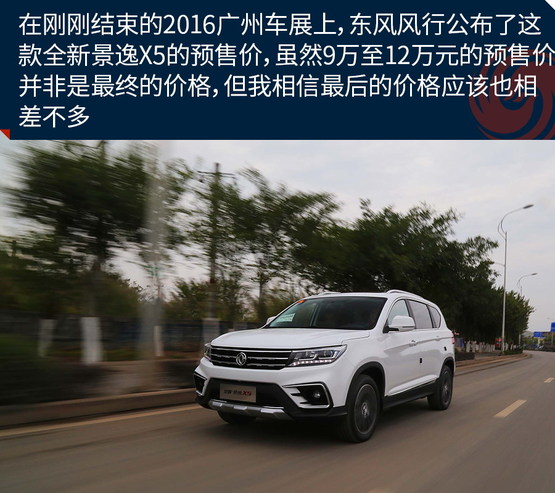 在剛剛結(jié)束的2016廣州車展上,東風(fēng)風(fēng)行公布了這款全新景逸X5的預(yù)售價(jià),雖然9萬至12萬元的預(yù)售價(jià)并非是最終的價(jià)格,但我相信最后的價(jià)格應(yīng)該也相差不多,最便宜的車型價(jià)格應(yīng)該會在8萬至9萬之間,而頂配車型或許不高于12萬。