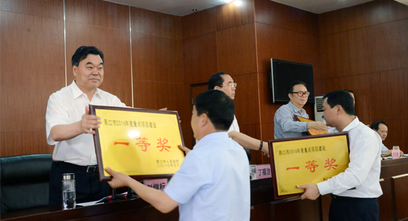 市領(lǐng)導(dǎo)劉繼標(biāo)、丁福浩等為先進(jìn)單位頒獎(jiǎng)。記者 王映 攝