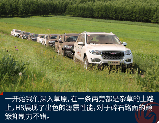 ????????經(jīng)過(guò)一段輕度的草原穿越,這段路程主要是體驗(yàn)H8的通過(guò)性和濾震性能,好戲才剛剛開(kāi)始,通過(guò)這段路程我已經(jīng)感受出了H8偏向城市型SUV的調(diào)教,底盤(pán)很穩(wěn)健,但是懸掛比較硬朗。