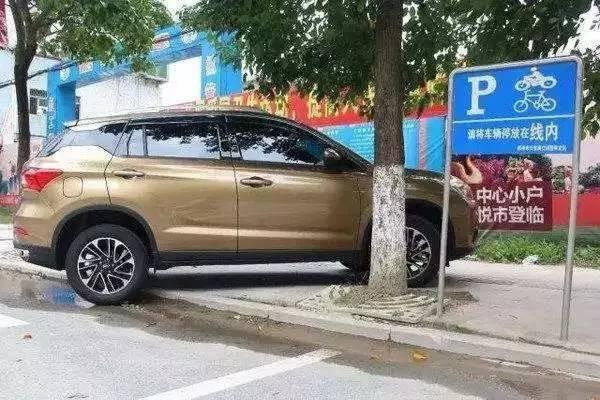 ????除了常見(jiàn)的半側(cè)車(chē)輪騎馬路牙子外,上圖中這種前后車(chē)輪騎馬路牙子的停車(chē)方式也不可取。