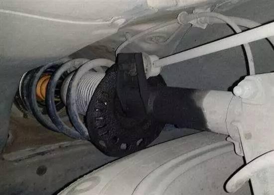 ????從上圖中可以明顯看出后輪懸架彈簧被拉開(kāi),車(chē)輛后部完全靠靠彈簧張力來(lái)支撐,而在懸架結(jié)構(gòu)中彈簧并不起支撐作用,而是起到減少?zèng)_擊力的緩沖作用,如果總是讓彈簧支撐車(chē)身必然會(huì)減少?gòu)椈蓧勖⒂绊懻?chē)懸架性能。