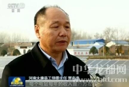 “塘上發(fā)電、塘下養(yǎng)魚。在河南太康縣劉寨村,原來廢棄的水塘不僅重新養(yǎng)上了魚,還又建了光伏太陽能發(fā)電設(shè)備。貧困戶劉宗林告訴記者,現(xiàn)在不僅用電不花錢,每年還有一定的分紅。”當(dāng)晚的新聞聯(lián)播畫面中,開始就提到了太康縣老冢鎮(zhèn)劉寨村的發(fā)電項目。在長達1分41秒的報道中,介紹太康縣的內(nèi)容占了1分多鐘。