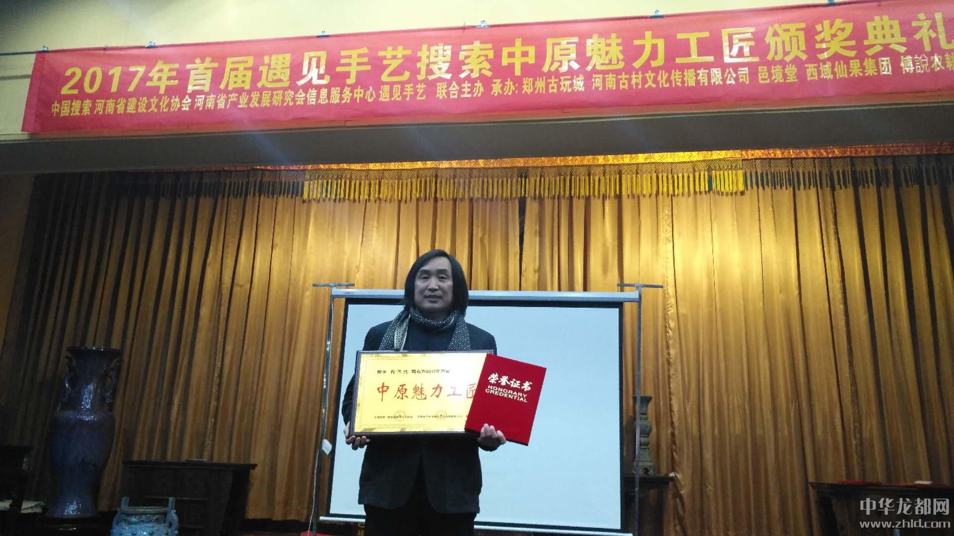 經(jīng)2017首屆中原魅力工匠評審工作委員會認真初評、終評、綜合打分,最終張振福泥塑作品《老來伴》在推選活動中榮獲“金獎”。張振福等27位藝術家榮獲“中原魅力工匠”榮譽稱號。張振福作為民間藝術家代表在頒獎典禮上作了唯一的典型發(fā)言即“獲獎感言”。