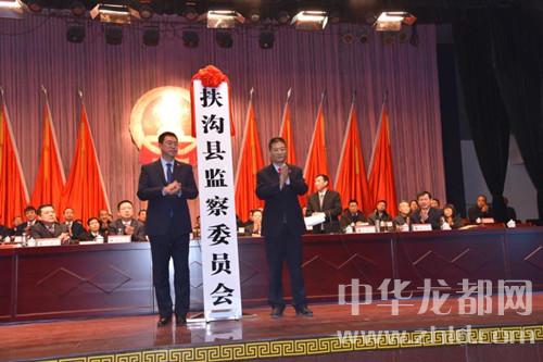 盧偉、常青共同為扶溝縣監(jiān)察委員會(huì)揭牌,標(biāo)志著扶溝縣監(jiān)察委員會(huì)的正式成立。