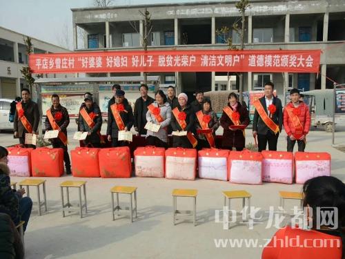 中華龍都網(wǎng)訊(周口報(bào)業(yè)全媒體記者 付永奇 趙永昌 文/圖))2月10日下午,商水縣平店鄉(xiāng)曾莊小學(xué)操場(chǎng)內(nèi),人頭攢動(dòng)、熱鬧非凡,村里評(píng)選出來的10位好婆婆、好媳婦、好兒子、清潔文明戶、脫貧光榮戶等“五好”群眾代表身披綬帶、胸戴紅花,臉上都洋溢著幸福的喜悅;一些民間文藝團(tuán)體分別助興表演了挑花籃、扇子舞、廣場(chǎng)舞等喜慶的節(jié)目,把現(xiàn)場(chǎng)氣氛烘托得異常隆重?zé)崃?。“為弘揚(yáng)社會(huì)公德、家庭美德,提升群眾素質(zhì)和文明程度,春節(jié)來臨之際我們召開‘五好’表彰大會(huì),下面有請(qǐng)鄉(xiāng)黨委副書記、鄉(xiāng)長(zhǎng)徐汝濤給大家講話......”隨著主持人、鄉(xiāng)紀(jì)委書記劉新光的開場(chǎng)白,臺(tái)下響起了一陣熱烈的掌聲。“開展好婆婆、好媳婦、好兒子、清潔文明戶、脫貧光榮戶等模范家庭人物評(píng)選是我鄉(xiāng)精神文明建設(shè)工作的一項(xiàng)重大舉措,也是脫貧攻堅(jiān)、農(nóng)村人居環(huán)境整治、文明鄉(xiāng)風(fēng)提升的部分內(nèi)容,更是弘揚(yáng)孝親敬老、勤勞致富、講究衛(wèi)生等優(yōu)良傳統(tǒng)的需要。全鄉(xiāng)各村都要通過召開評(píng)選表彰大會(huì),引導(dǎo)廣大人民群眾學(xué)先進(jìn)、爭(zhēng)先進(jìn),為文明和諧平店建設(shè)做出更大的貢獻(xiàn)......”徐汝濤提出殷切的希望。曾莊行政村“兩委”成員、駐村工作隊(duì)、第一書記及部分群眾200余人參加了會(huì)議。與會(huì)領(lǐng)導(dǎo)為此次層層推薦評(píng)選出的好婆婆、好媳婦、好兒子、清潔文明戶、脫貧光榮戶頒發(fā)了榮譽(yù)證書和獎(jiǎng)品。據(jù)村支部書記曾紀(jì)靈介紹,這些“五好”模范都有感人的故事,或是講究衛(wèi)生、勤儉持家,孝老敬親、患難與共;或是鄰里互助、脫貧致富;他們用實(shí)際行動(dòng)證明了自己對(duì)文明風(fēng)尚的價(jià)值追求,在生活中書寫了一個(gè)個(gè)接地氣的好故事,為廣大家庭樹立了好榜樣。受表彰的好婆婆胡秀英說:“把媳婦當(dāng)閨女,啥時(shí)候也不會(huì)吵架生氣......”清潔文明戶朱國(guó)申說:“農(nóng)村環(huán)境臟亂差,咱要帶頭改變它......”脫貧光榮戶劉前進(jìn)說:“國(guó)家扶貧政策好,不如早點(diǎn)摘掉貧困帽!”