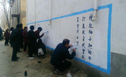 中華龍都網(wǎng)訊(周口報(bào)業(yè)全媒體記者 高洪馳 通訊員徐濤)為進(jìn)一步增強(qiáng)群眾脫貧致富的信心和決心,鄲城縣委、縣政府依托本縣“中國書法之鄉(xiāng)”的優(yōu)勢(shì),緊扣“脫貧致富奔小康”主題,在全縣23個(gè)鄉(xiāng)鎮(zhèn)(辦事處)1228個(gè)自然村組織舉辦脫貧攻堅(jiān)知識(shí)萬人書畫文化下鄉(xiāng)行活動(dòng)。自活動(dòng)開展以來,近萬人次的書畫家已書寫脫貧攻堅(jiān)作品36840幅,每村墻體書畫作品30幅左右,義寫春聯(lián)4萬余幅,受到了廣大群眾的歡迎。