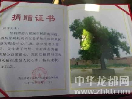 上午9時,張麗娟在儀式上向房墉先生頒發(fā)了捐贈證書,并在儀式結(jié)束后共同栽植下6棵30年樹齡捐贈國槐樹。據(jù)了解,這是北京翰高集團(tuán)繼打造沈丘中華槐園、捐栽槐樹添綠淮陽伏羲陵園后,今年又先后為老子故里鹿邑以及周口中心城區(qū)捐栽價值100多萬元的國槐樹。