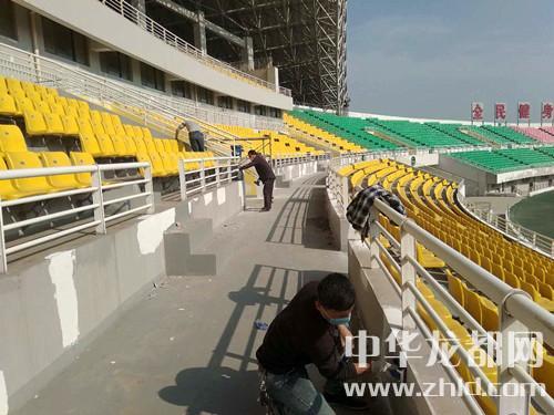 中華龍都網(wǎng)訊(周口報業(yè)全媒體記者 韓志剛 文/圖)為了迎接即將到來的省運會,我市最大的體育場——周口市體育中心體育場正在進行改造升級。3月13日,記者在周口市體育中心體育場看到,工人們正在維修場館內(nèi)外墻,破損墻面已經(jīng)重新粉刷膩子。今年9月,河南省第十三屆運動會開幕式將在這里舉行。