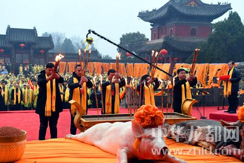 本報訊 (記者 侯俊豫 李莉) 3月18日,農(nóng)歷二月初二,巍巍羲陵,古柏新枝,2018(戊戌)年公祭中華人文始祖太昊伏羲氏大典隆重舉行。來自海內(nèi)外的千余名羲皇子孫匯聚太昊陵統(tǒng)天殿前,共祭中華人文始祖太昊伏羲氏,祈愿華夏繁榮昌盛,共祝世界和平和諧。