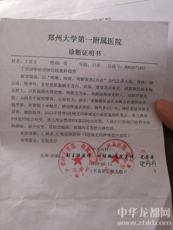 “肺炎、免疫缺陷?。╔連鎖無(wú)丙種球蛋白血癥)”,2018年3月15日,來(lái)自鄭大一附院的一張化驗(yàn)單讓于東兩口子徹底崩潰了。于東說(shuō),拉拉扯扯求醫(yī)四五年,有時(shí)候檢測(cè)結(jié)果證明是孩子先天性免疫力低下,疑似造血功能不完善,但他不敢相信。由于家庭貧困,他們四處借債在縣、鄉(xiāng)、村三級(jí)醫(yī)院救治。
