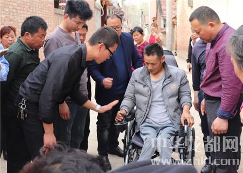 中華龍都網訊(周口報業(yè)全媒體記者 李瑞才 通訊員劉傳保 胡洪濤圖文)前不久,本網曾報道了鹿邑太清宮鎮(zhèn)男子王成濤因從10樓墜落致癱瘓,自愿捐出器官救別人的事跡,看到報道后,許多網友紛紛稱贊王成濤。為了方便王成濤活動,近日,在鹿邑縣委宣傳部、縣文明辦的倡導和參與組織下,鹿邑星宇電子商務有限公司的總經理王朝華、郭彥山,副總經理孫永建等人來到了太清宮鎮(zhèn)楊橋村,專門為王成濤送來他們在網上訂購的電動輪椅。