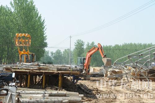 中華龍都網(wǎng)訊(周口報業(yè)全媒體記者 張勁松 通訊員 蘇千 文/圖)4月18日,東新區(qū)城管中心在該區(qū)國土局、許灣鄉(xiāng)政府的配合下,出動執(zhí)法人員120多名,執(zhí)法車輛10輛,對許灣鄉(xiāng)程寺行政村6處違法占地、違章建設進行強制拆除。