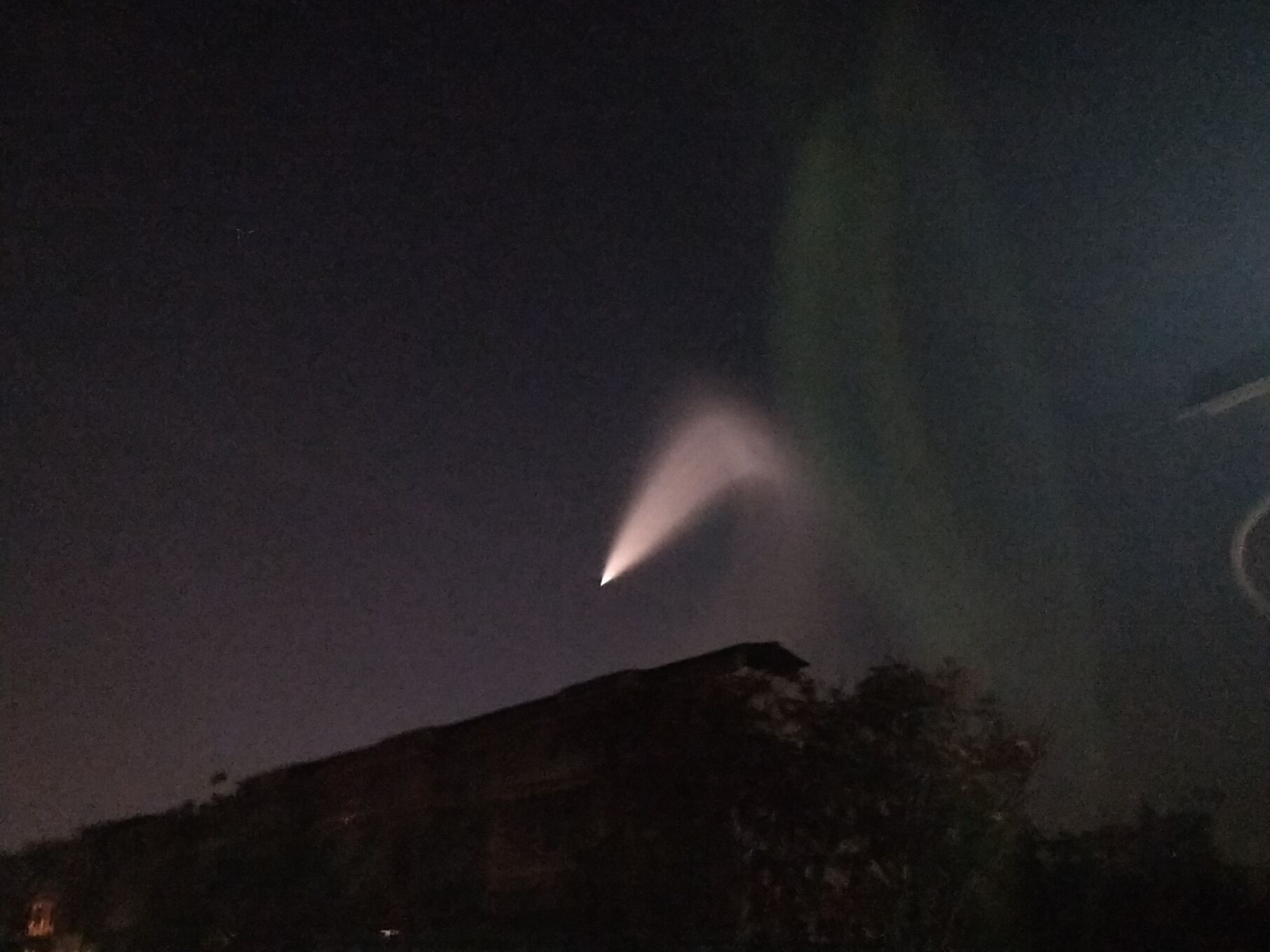 對(duì)于這個(gè)場(chǎng)景,正在周口市西華縣出差的河南省文聯(lián)工作人員王建坡也看到了。他給大河報(bào)·大河客戶端記者發(fā)來的圖片顯示,天空西北方向有一道扇形亮光,好像誰家的手電筒被扔到了天上。