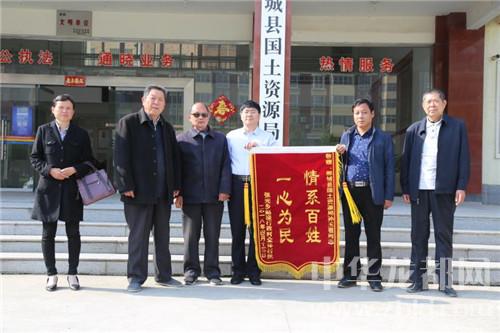 中華龍都網(wǎng)訊(周口報業(yè)全媒體記者 徐松 通訊員 陳吳陸)5月3日,鄲城縣張完鄉(xiāng)趙樓行政村村民代表趙傳本等一行4人手捧一面“情系百姓一心為民”的錦旗,專程來到鄲城縣國土資源局,對該局副局長孫玉君駐村以來的工作成效給予了高度贊揚,以此表示群眾對國土局領(lǐng)導(dǎo)干部為群眾解決困難的感激之情。