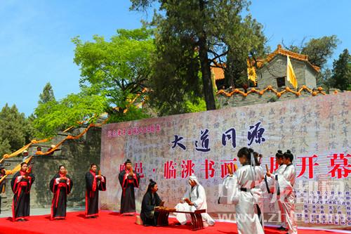 中華龍都網(wǎng)訊(周口報業(yè)全媒體記者 李瑞才/文 通訊員 陳興有/圖)5月4日上午,“大道同源”——鹿邑·臨洮書畫聯(lián)展活動在鹿邑縣明道宮景區(qū)開幕。此次活動由甘肅省臨洮縣人民政府和鹿邑縣人民政府共同舉辦,精選兩地137位書畫藝術家140余幅作品在鹿邑展出。鹿邑縣領導武衛(wèi)東、劉銀、宋克言、王玉超和臨洮縣委常委、宣傳部長郭志萍等出席開幕式。