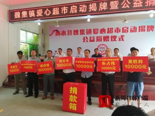 7月17日上午,商水縣魏集鎮(zhèn)舉行“愛心超市 ”啟動(dòng)揭牌暨公益捐贈(zèng)儀式。來(lái)自全鎮(zhèn)各地的企業(yè)單位代表40多人向“愛心超市”捐款30多萬(wàn)元。