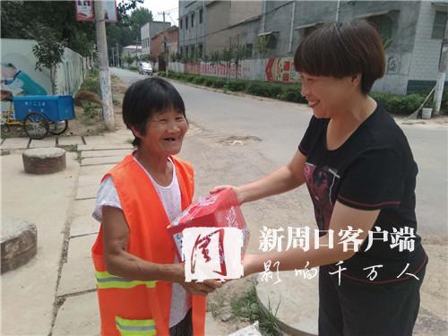 上午10時(shí)許,欣中基清潔公司經(jīng)理張志宏來(lái)到邵寨行政村。看到路面干干凈凈,她很高興。除了例行巡視,張志宏此行還有一項(xiàng)任務(wù):向每位保潔員發(fā)放一件飲料?!疤鞖獬掷m(xù)高溫,保潔員們露天辛勤勞動(dòng),給村民們創(chuàng)造了良好的生活環(huán)境。因此,公司決定開(kāi)展慰問(wèn)活動(dòng)?!苯舆^(guò)飲料,邵天錄等6名保潔員滿臉笑容地連聲道謝。