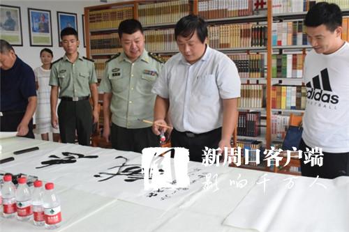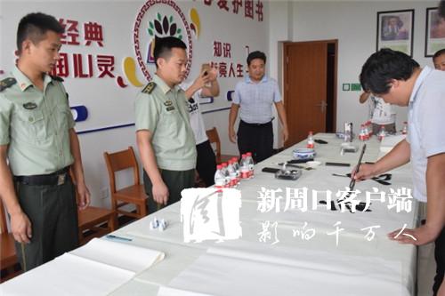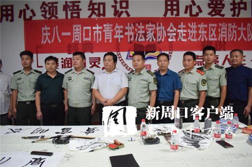 為進(jìn)一步充實(shí)官兵的警營文化生活,喜迎建軍91周年,7月30日下午,周口市青年書法家協(xié)會會長李為等人走進(jìn)東新區(qū)消防大隊(duì),現(xiàn)場揮毫潑墨,用飽蘸感情的書法作品向消防官兵表達(dá)了節(jié)日祝福。