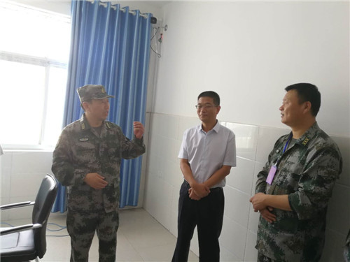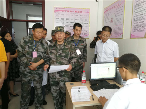 8月7日,周口軍分區(qū)司令員王善沖到扶溝縣人民醫(yī)院現(xiàn)場檢查指導征兵體檢工作,看望體檢工作人員和應征青年。