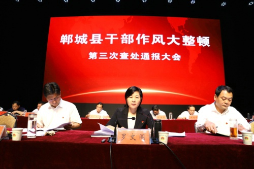 8月15日下午,鄲城縣召開(kāi)干部作風(fēng)大整頓第三次查處通報(bào)大會(huì)。貫徹全市干部作風(fēng)大整頓查處通報(bào)會(huì)議精神和縣委十二屆四次全會(huì)暨縣委工作會(huì)議精神,通報(bào)典型案例,宣布處理決定,傳導(dǎo)工作壓力,夯實(shí)工作責(zé)任,為進(jìn)一步推進(jìn)各項(xiàng)工作任務(wù)落實(shí)、打好打贏脫貧攻堅(jiān)戰(zhàn)提供堅(jiān)強(qiáng)有力的作風(fēng)保障??h委書(shū)記羅文閣發(fā)表講話,縣長(zhǎng)李全林主持。全縣副處級(jí)以上領(lǐng)導(dǎo)干部和縣、鄉(xiāng)、村各級(jí)各部門(mén)負(fù)責(zé)人參會(huì)。