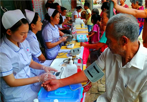 當(dāng)天一大早,村民早早地就等候在活動現(xiàn)場,每一處測量、檢查點都排起了長隊。義診中,村民仔細詢問自己的身體狀況,醫(yī)護人員都耐心地一一給予解答。 此次義診活動,共為曹堂行政村4個自然村600余名村民提供健康咨詢、健康檢查,免費贈送價值5萬余元藥品,發(fā)放宣傳手冊2000冊,受到村民們的一致好評。