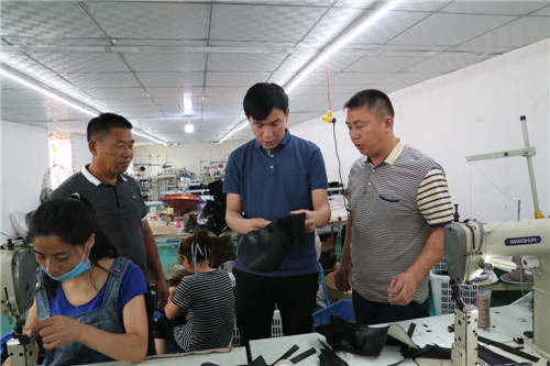 朱口鎮(zhèn)王堯村的王文麗以前在外打工,如今她在家門口鞋廠邊務(wù)工邊照顧家人,實現(xiàn)了掙錢顧家兩不誤。王文麗生活的改變,得益于家門口建起了鞋廠。王堯村是朱口鎮(zhèn)的一個貧困村,受家鄉(xiāng)政策的吸引,在溫州干工程起家的李軍經(jīng)過考察,決定以溫州國際鞋城為依托回鄉(xiāng)辦廠?!拔以跍刂荻嗄?,積累了豐富的人脈和市場資源,不愁訂單,不愁銷路,因此企業(yè)發(fā)展形勢越來越好?!崩钴娙涨敖邮苡浾卟稍L時說,“廠子的快速發(fā)展得益于縣鄉(xiāng)村各級扶貧政策的支持,我將抓住這一難得的機遇,繼續(xù)擴大規(guī)模,帶領(lǐng)更多群眾脫貧致富。”