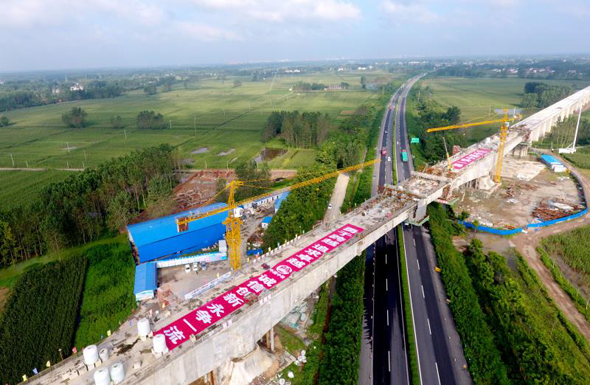 據(jù)了解,沈界1號(hào)特大橋開創(chuàng)了中國高鐵的多項(xiàng)“之最”。這座橋全長(zhǎng)15471米,中跨長(zhǎng)達(dá)172米,采取懸臂澆筑法進(jìn)行施工,是目前國內(nèi)同類型高鐵橋梁的最大跨度。