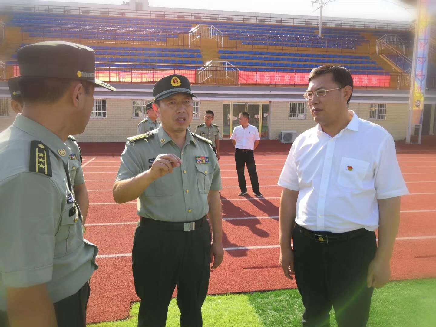 在縣委書(shū)記馬衛(wèi)東,縣委常委、縣人武部政委李強(qiáng),縣人武部部長(zhǎng)何永華等人的陪同下,王善沖一行實(shí)地察看了新兵役前訓(xùn)練情況,與新兵進(jìn)行親切交談,詳細(xì)詢問(wèn)了解訓(xùn)練生活情況。