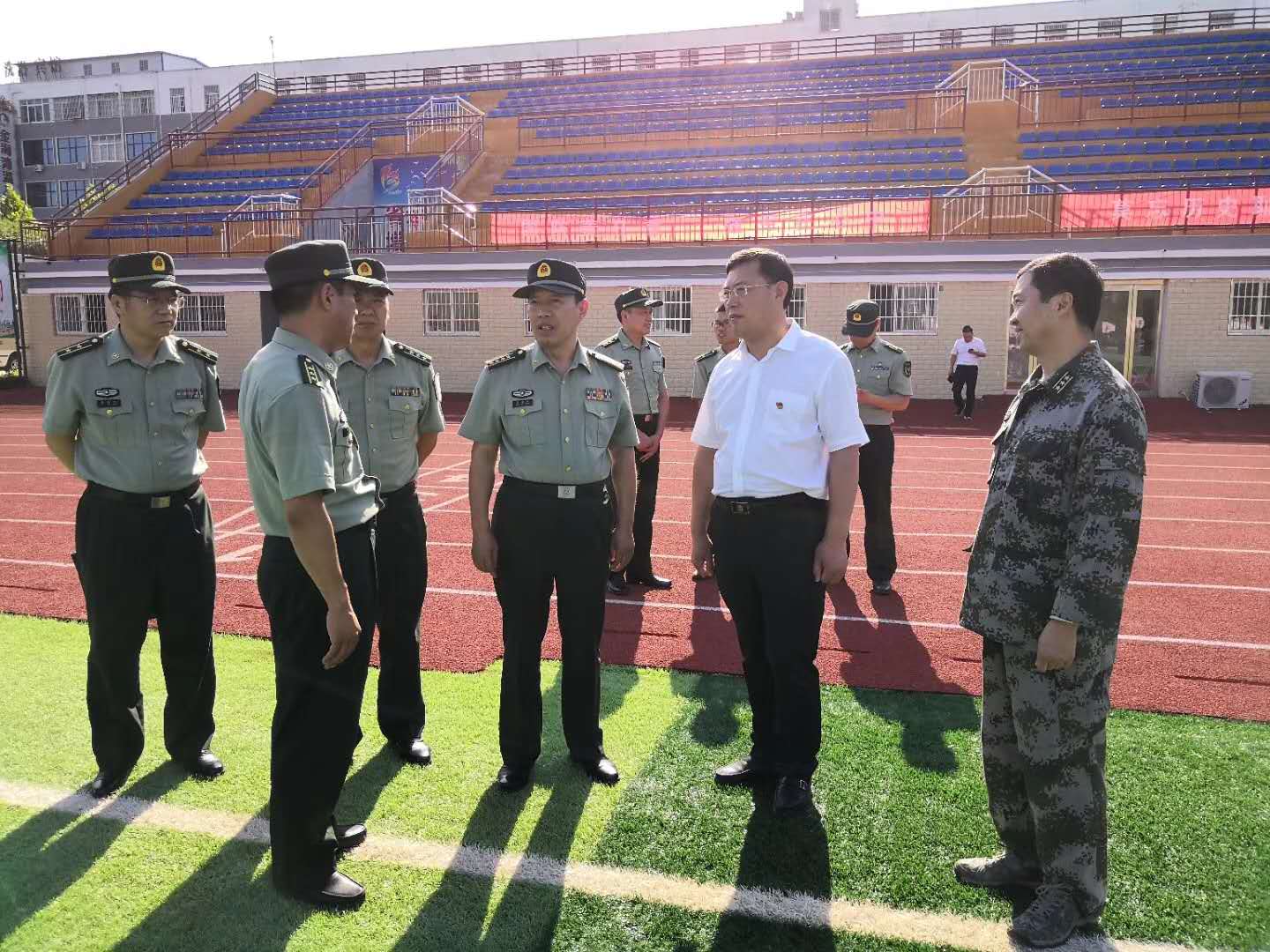 8月23日下午,周口軍分區(qū)司令員王善沖到商水縣檢查新兵役前訓(xùn)練工作時(shí)強(qiáng)調(diào):要圍繞形勢(shì)任務(wù),按綱施訓(xùn),高標(biāo)準(zhǔn)抓好役前訓(xùn)練質(zhì)量。要樹(shù)立正確的帶兵觀念,及時(shí)了解預(yù)定新兵的思想、關(guān)心他們的生活、鼓勵(lì)他們進(jìn)步。要講究工作的方式方法,科學(xué)安排訓(xùn)練科目,狠抓作風(fēng)養(yǎng)成,高標(biāo)準(zhǔn)圓滿完成役前教育訓(xùn)練任務(wù),讓預(yù)定新兵順利完成從一名地方青年到合格軍人的轉(zhuǎn)變。