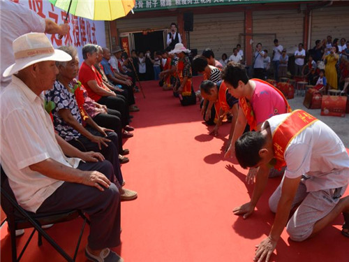 鄉(xiāng)長吳國鋒發(fā)表了熱情洋溢的致辭。他首先代表平店鄉(xiāng)黨委、政府、人大向受到表彰的先進模范和先進家庭表示熱烈的祝賀并致以崇高的敬意。并詳細闡述了開展“孝善敬老讓愛回家、孝賢之星表彰授牌暨解決獨居老年人問題、助力脫貧攻堅的重大意義,他希望受到表彰的先進代表和家庭要珍惜榮譽、再接再厲,繼續(xù)弘揚尊老、敬老、養(yǎng)老、愛老的傳統(tǒng)美德,推動全鄉(xiāng)“孝善敬老”文化不斷邁向新臺階。活動現(xiàn)場宣讀了《平店鄉(xiāng)人民政府敦促將被贍養(yǎng)人接入安全住房共同生活的通告》;與會領(lǐng)導為孝賢之家頒獎授牌;28個“孝子孝媳”在臺上統(tǒng)一施行叩拜大禮;活動結(jié)束后,鄉(xiāng)政府指派3名班子領(lǐng)導和10多名工作人員,分別乘坐6臺輛,由嗩吶隊開路,風風光光把28個老人送回了家。一路引來不少群眾駐足注目觀看,廣大群眾對此嘖嘖稱贊、拍手稱快。