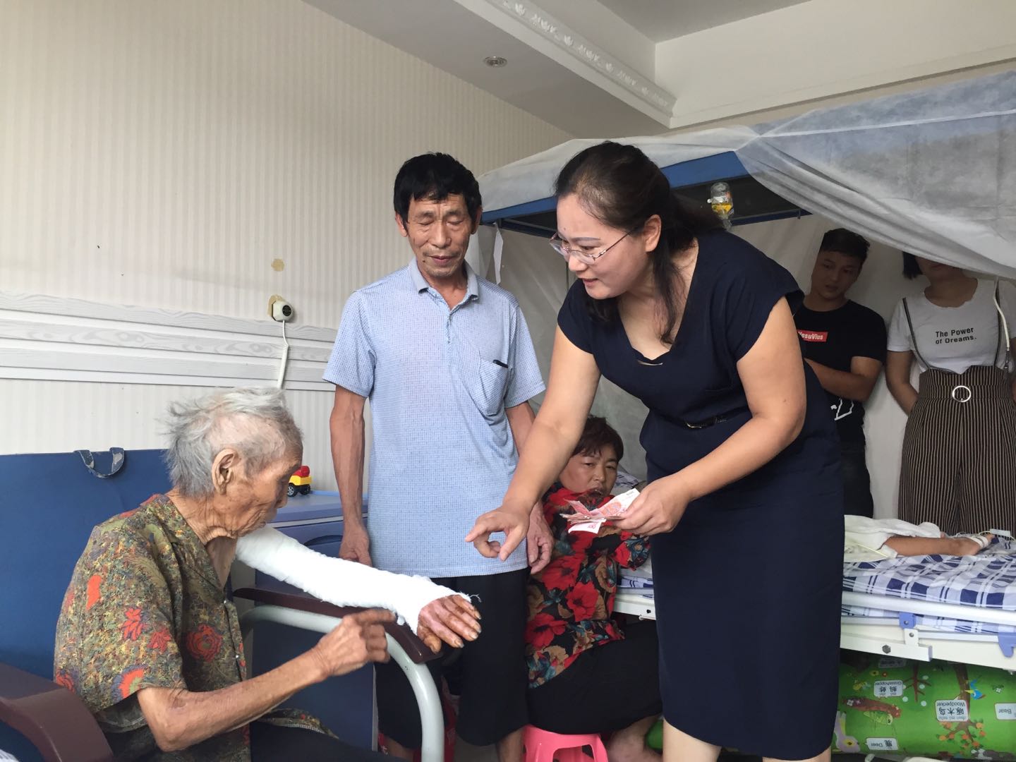 8月26日,駐村第一書記劉春華和村脫貧責(zé)任組組長李小林懷著感激之情,為周口燒傷醫(yī)院送去錦旗兩面。周口燒傷醫(yī)院長張巋說:“幫扶工作是黨的工作,縣、鄉(xiāng)、村干部的真心幫扶,我們醫(yī)院也應(yīng)當發(fā)揮扶貧濟困的作用,盡一些社會責(zé)任,為貧困的群眾做點好事,解決他們的實際困難”,院方當即決定贈送給李二俊老太太2000元現(xiàn)金營養(yǎng)費。”
