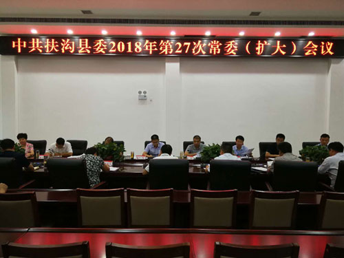 9月3日,扶溝縣委2018年第27次常委(擴大)會議召開,盧偉、張峰、張建中、王偉、馬昭才、常青、張雪芳、朱良杰、趙紅亮等縣領導出席會議,縣委書記盧偉主持會議。