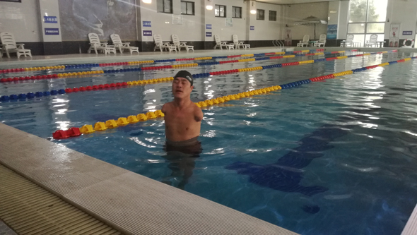 島建書(shū)進(jìn)行游泳訓(xùn)練